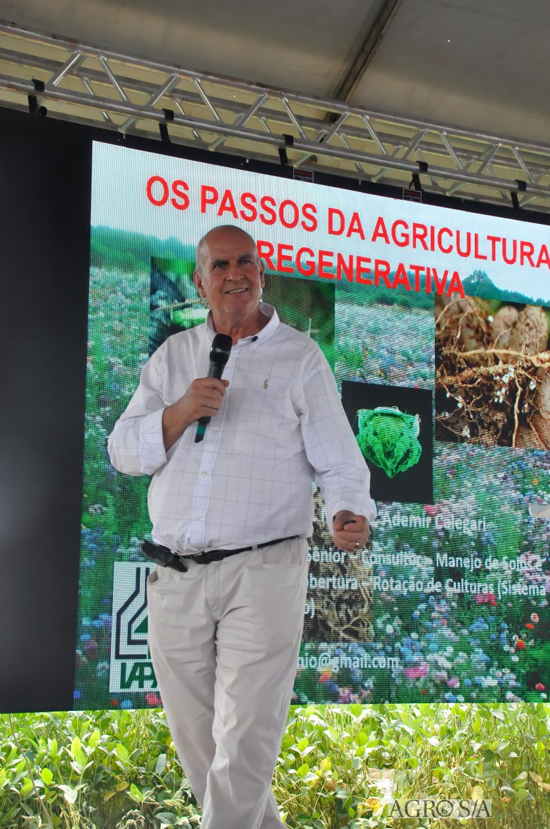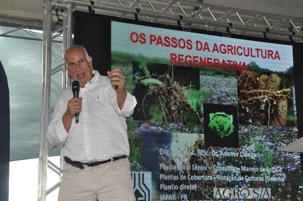 A programação técnica teve início com o professor Ademir Calegari, que reforçou a importância de enxergar o solo como um organismo vivo. Com quase 50 anos de atuação no Brasil e no exterior, ele destacou que não existem receitas prontas, mas sim sistemas bem construídos, com diversidade de plantas, raízes ativas e manejo integrado. Segundo ele, grande parte das perdas de produtividade está relacionada a falhas de processo, e não à falta de insumos. O foco deve estar na construção de sistemas eficientes e duradouros.